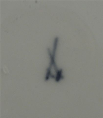MEISSEN (?). TASSE A DEUX ANSES et une sous-tasse en porcelaine à décors floraux, liséré d'or ; marque aux épés croisées sous la sous-tasse et à deux points sous la tasse.