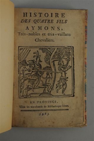 Histoire des quatre fils Aymons, très-nobles et très-vaillants chevaliers. En province, chez les Marchands de Bibliothèque bleue, 1589 (?).
