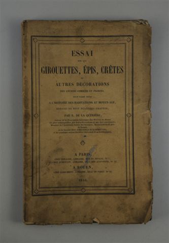 LA QUERRIERE. Essai sur les girouettes, épis, crêtes et autres décorations des anciens combles et pignons. Lebrument, ..., 1846.
