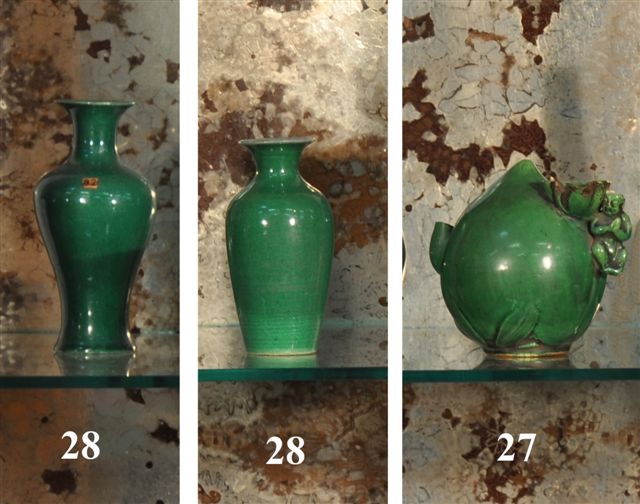Deux petits modèles de VASES en porcelaine émaillée vert.