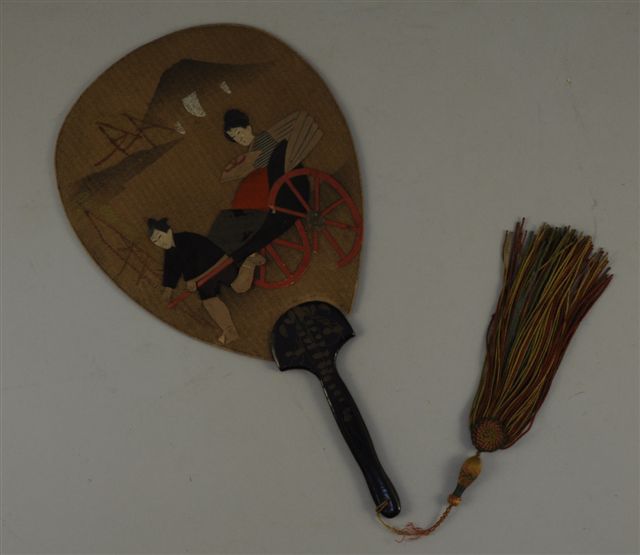 ECRAN à main. Tissu et papier. Haut. 35,5 cm