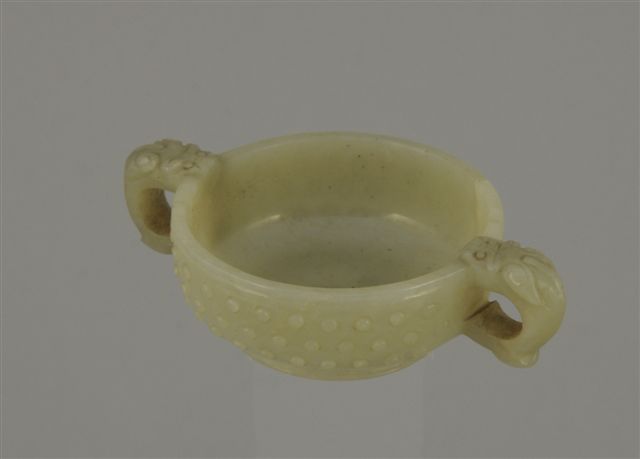 COUPE ronde en néphrite sculptée. Le corps à relief de...