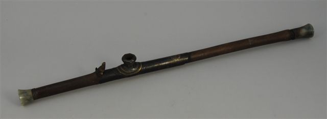 PIPE à opium, garniture métal damasquiné, extrémité en pierre dure...