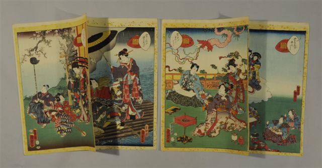LOT de 29 ESTAMPES japonaises dont par Toyokuni III de la série du Genji Monogatari.