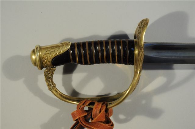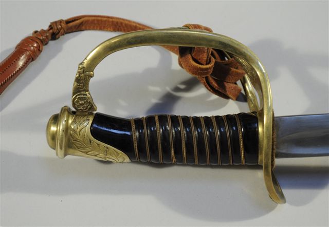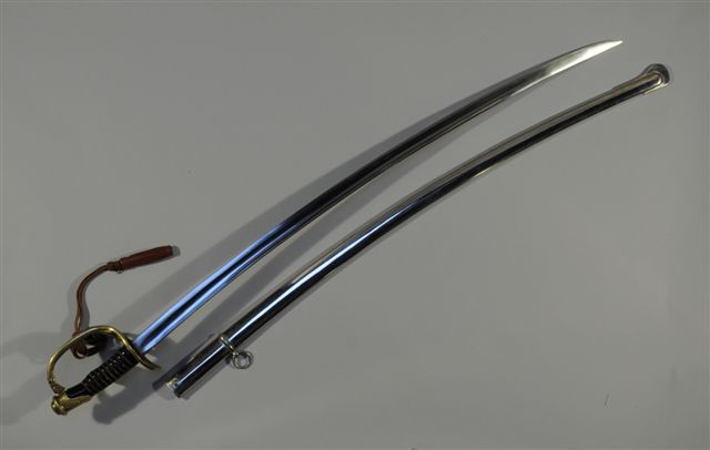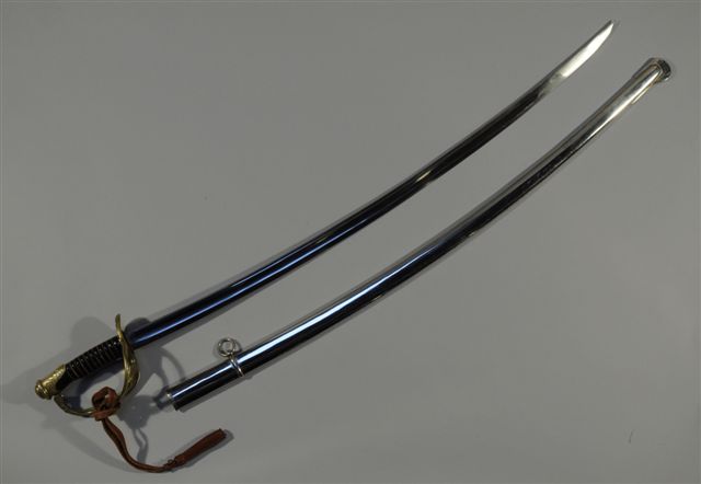 SABRE OFFICIER ARTILLERIE modèle 22/82, lame marquée: "Coulomse (...) Klingenthal France", poignée corne, avec dragonne, fourreau nickelé.