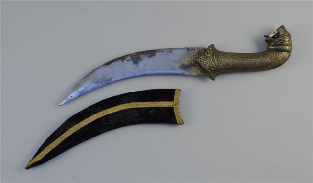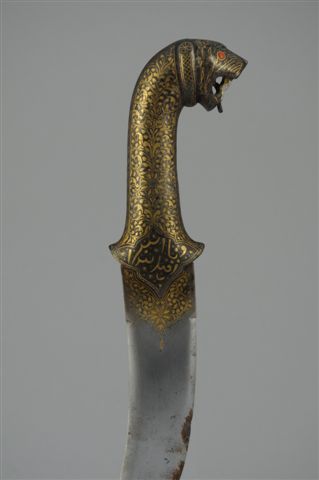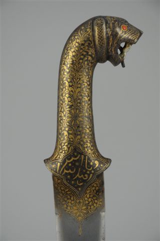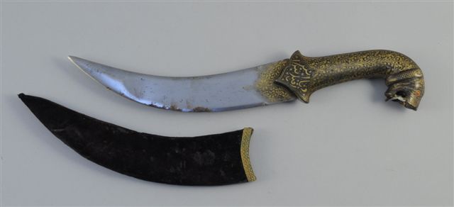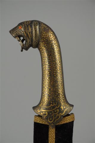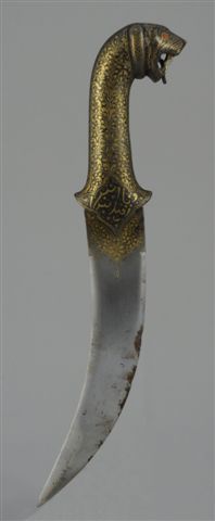 POIGNARD Indo Persan. Poignée en tête de tigre aux yeux...