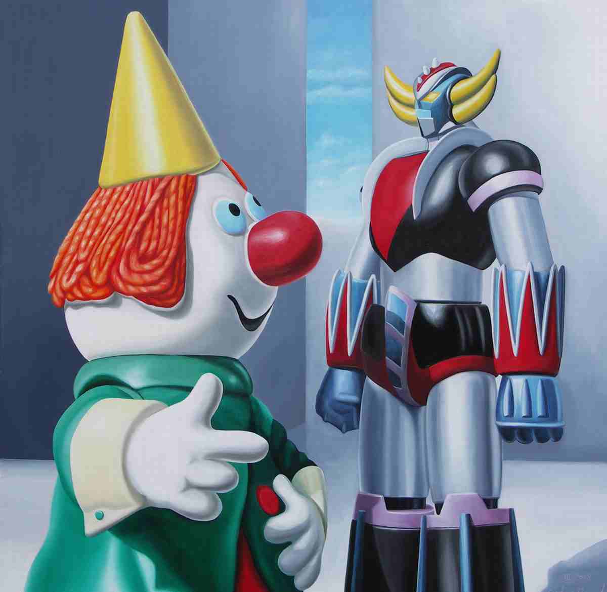 Caroline MAUREL"Goldorak et kiri le clown"Huile sur toile80 x 80...