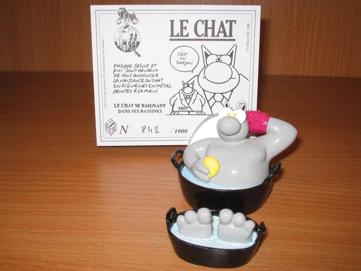 LE CHAT SE BAIGNANT DANS SES BASSINES.