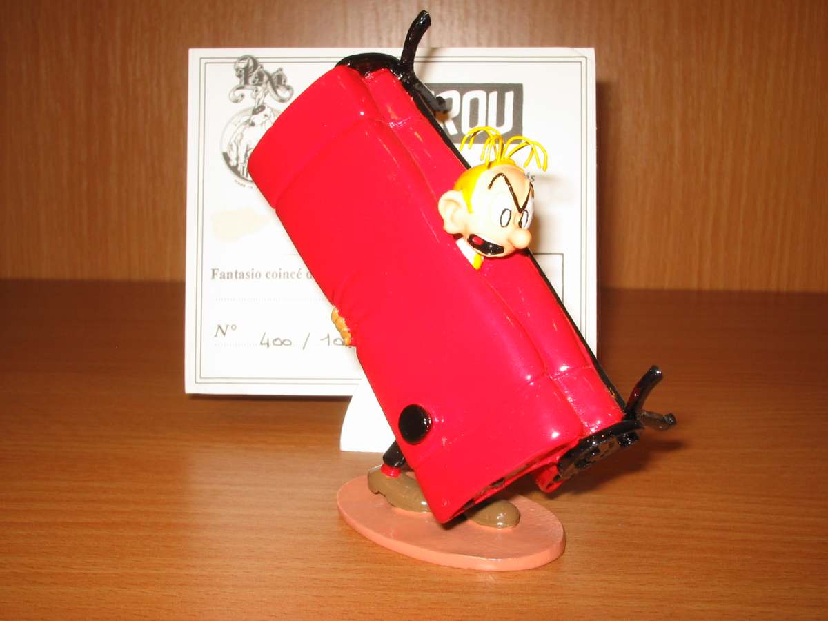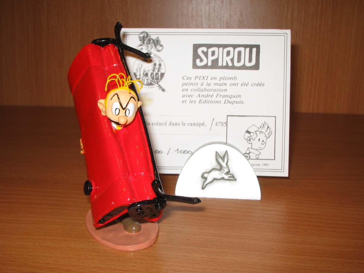 FANTASIO COINCÉ DANS LE CANAPÉ.
