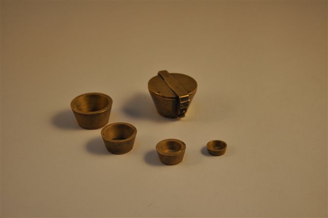 PILE dite de Charlemagne comprenant six godets en bronze. XVIII-XIXème.Diam. 4 cm (manques)