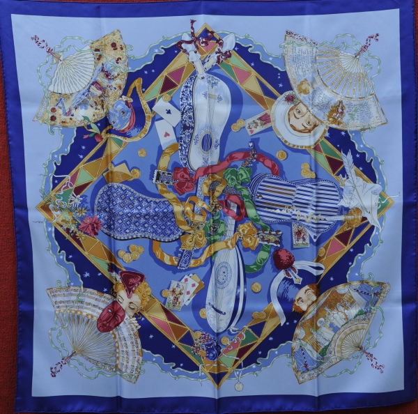 HERMÈS Paris. Carré de soie "au Clair de la Lune", dans sa boite.