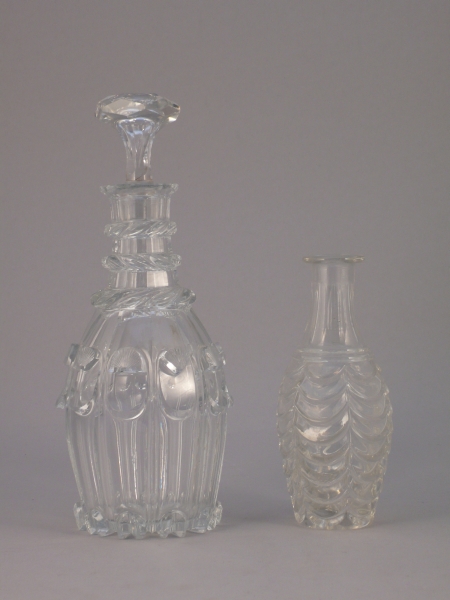 Joint: petite carafe en verre moulé "écailles de poisson" (manque le bouchon)