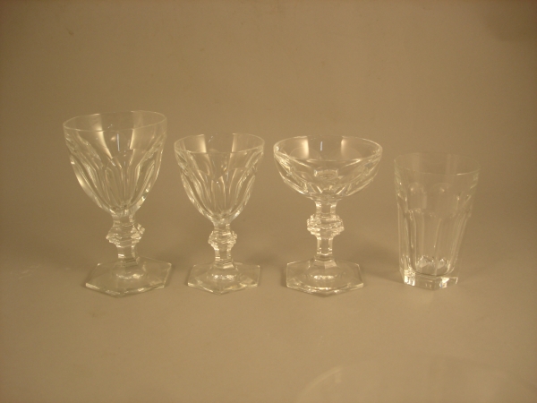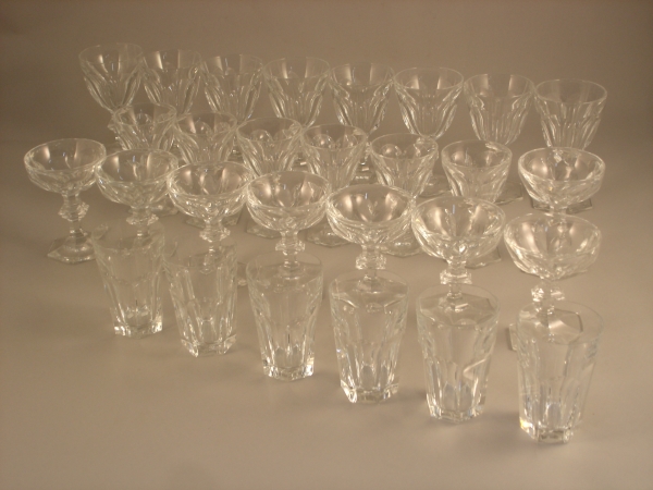 BACCARAT. SERVICE de VERRES 28 pièces en cristal, modèle "HARCOURT", comprenant 8 verres à eau, 6 verres à vin, 8 coupes à champagne, 6 gobelets. Marqués.