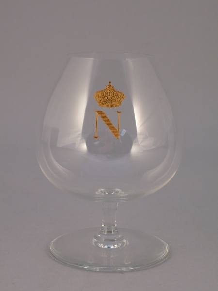 BACCARAT. SERVICE à cognac en cristal comprenant une carafe de section quadrangulaire, corps et bouchon taillés à pans et 9 verres à pied. L'ensemble gravé et doré "N" sous couronne fermée. Marqués.
