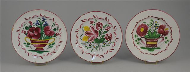 EST de la FRANCE. LOT de trois ASSIETTES en faïence à décor floral. L'une marquée d'un "C" en bleu avec marque en creux. XIX-XXème. Diam. 23 cm (éclats et fêles)
