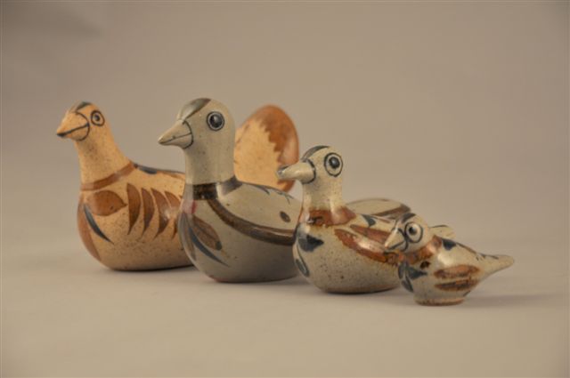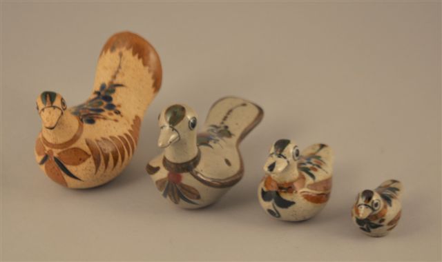VARIA. Quatre CANARDS en céramique vernissée et décorée de fleurs stylisées.
