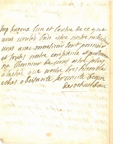 JOINT: Marie Claire Thérèse BÉGON (? - 1782), épouse de Joseph-Charles II de Vimeur, marquis de Rochambeau, et mère du maréchal. L.A.S., Paris 31 décembre 1758 ; 2 pages in-4.