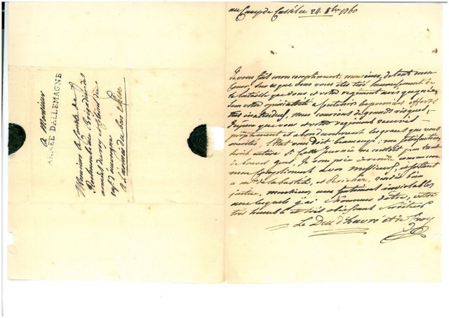 Louis Ferdinand Joseph de CROY, duc d'HAVRÉ (1713-1761) prince du Saint-Empire. L.A.S., Cassel 24 octobre 1760 ; 1 page in-4, adresse avec marque postale et cachet cire noire aux armes (brisé).