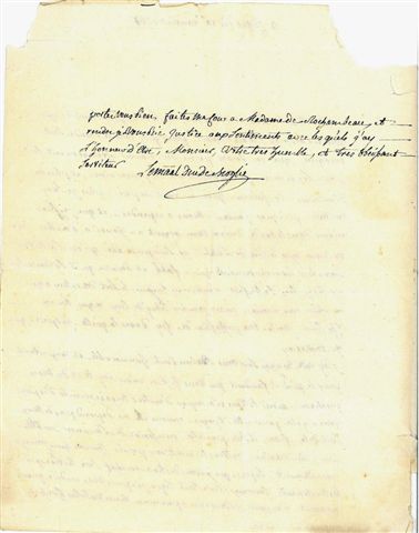 (...) j'ignore pourquoy tout le monde s'est imaginé que je serais peiné du nouvel arrangement fait pour les armées, je suis très éloigné de penser ainsi, et plus on diminuera le fardeau qu'on m'avait imposé, plus je seray content, puisque j'auray moins à répondre, et que je seray moins dans le cas de donner mon argent à jouer à d'autres. Je ne désire que le bien de l'état, je suis persuadé qu'on l'a en vue dans tous les arrangements qu'on fait, et pourvu qu'il s'y rencontre. Je seray très satisfait ; j'envieray toujours le sort de celuy à qui on otera une armée, mais jamais celuy de ceux à qui on en confiera ; voilà ma profession de foy dans laquelle j'espère que je montreray. J'ai jeté les yeux sur vous pour un poste honorable, et important (