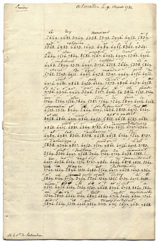 Dépêche codée en chiffres (en deux exemplaires) adressée au comte de Rochambeau, commandant en chef du corps expéditionnaire français en Amérique, contenant les instructions précises du roi Louis XVI.