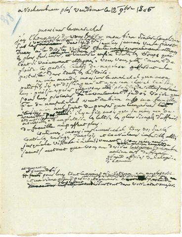 ) Je me dis d'avance seulement mon petit fils va profiter de ce dégoût pour mériter de soutenir le nom qu'il porte et pour obtenir ce qui n'est dû qu'au mérite. La bravoure la plus brillante est l'apanage de tout brave soldat, mais le talent est nécessaire pour former un bon officier surtout dans l'état-major de l'armée