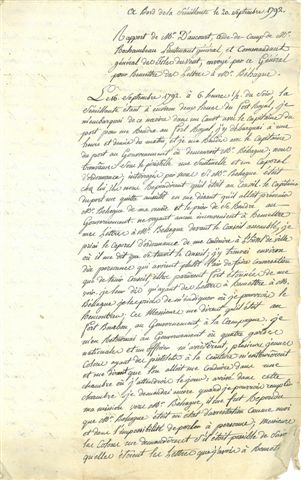 Joseph Nicolas Xavier DAUCOURT (1763-1840) lieutenant et aide-de-camp du général Rochambeau. L.S., à bord de la Sémillante 20 septembre 1792 ; 2 pages ½ in-fol.