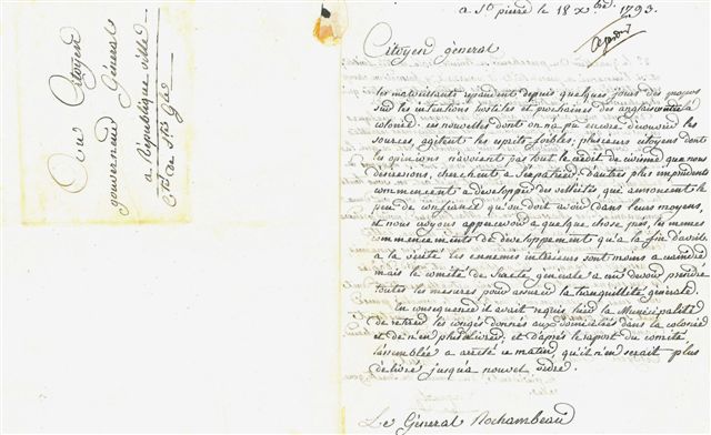 Correspondances adressées à Rochambeau, gouverneur général des Îles du Vent - 63 pièces.