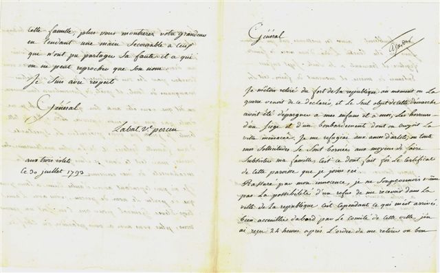 Très intéressant manuscrit autographe d'un contre-révolutionnaire français relatant précisément l'attaque de l'île de la Martinique par les troupes anglaises et par le parti royaliste. Je ne vois qu'en perspective l'époque à laquelle ma lettre pourra vous parvenir mais étant certain de vous faire plaisir, en vous faisant part de notre réunion à l'escadre anglaise, et de notre arrivée à la Martinique, ainsi que des événements qui pourront avoir lieu jusqu'à la prise de l'île, je me propose de rédiger en forme de journal, tout ce qui se passera entre les deux partis (
