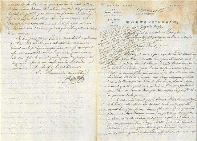 Armée - Correspondances d'officiers mulâtres ou noirs au général Rochambeau