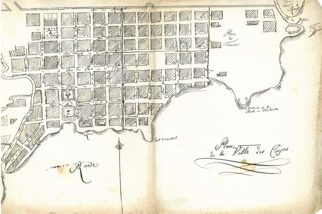 Plan de la ville des Cayes. Dessin à la plume. 43,5 x 28 cm.