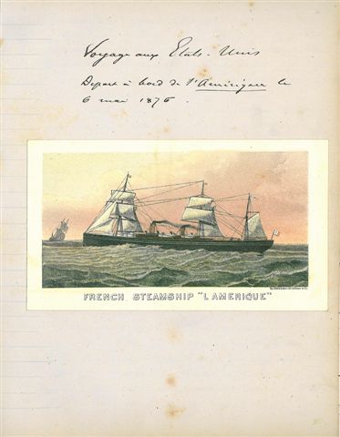 Joint environ 20 lettres d'Achille adressées à son épouse lors de son séjour aux États-Unis, écrites à bord du bateau l'Amérique, de Philadelphie et de New-York, mai-début juillet 1876.