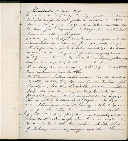 Achille de Rochambeau relate quotidiennement dans son journal, depuis son départ de France jusqu'à son voyage aux États-Unis, ses rencontres, ses découvertes et ses impressions personnelles du Nouveau-Monde. Il fait alors partie du jury français de l'Exposition universelle, composé entre autres du célèbre chimiste Kuhlmann et du sculpteur Bartholdi.