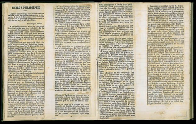 Journal de voyage, 1876. Cahier d'environ 50 pages in-4, reliure toile noire, mêlant passages manuscrits autographes et des extraits de coupures de journaux français et américains collés.