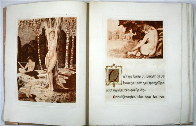 COURBOULEIX, LÉON. Le Cantique des Cantiques. Texte & illustrations gravés à l'eau forte par Léon COURBOULEIX. (sans lieu, sans date (mais vers 1940). En feuilles, chemise et étui de l'éditeur. Tiré à 310 exemplaires, celui-ci n° 175 sur vélin. Signé par l'artiste. (étui abîmé)