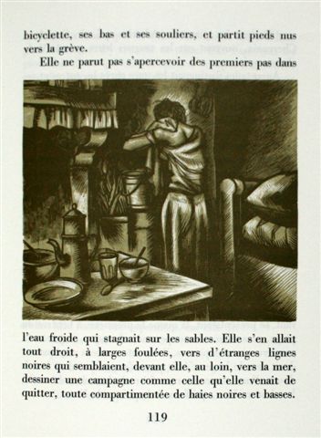 VERCEL, ROGER. La Clandestine. Lames Sourdes. Illustré de gravures sur bois en couleur d'André COLLOT. Paris, au Moulin de Pen-Mur, 1943. Broché. Non-coupé. Tirée à 1000 exemplaires, celui-ci N° 689 sur Vélin.