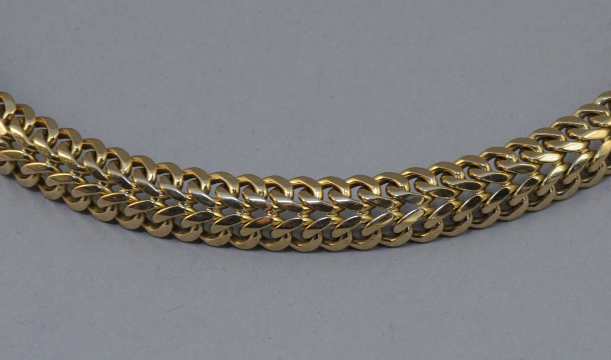 COLLIER articulé en or jaune composé de deux lignes de maillons gourmettes.