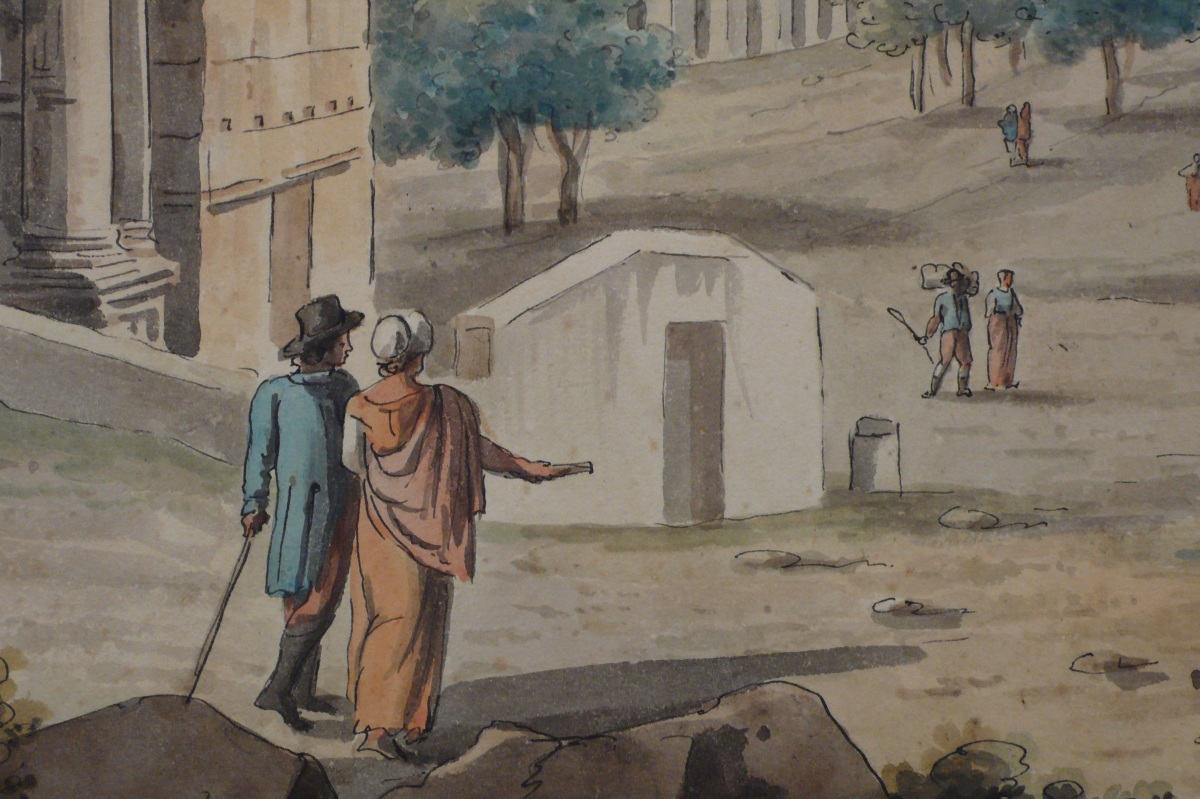 École EUROPÉENNE vers 1830."Foro Romano".Dessin aquarellé titré en bas au...