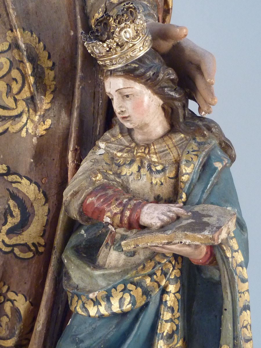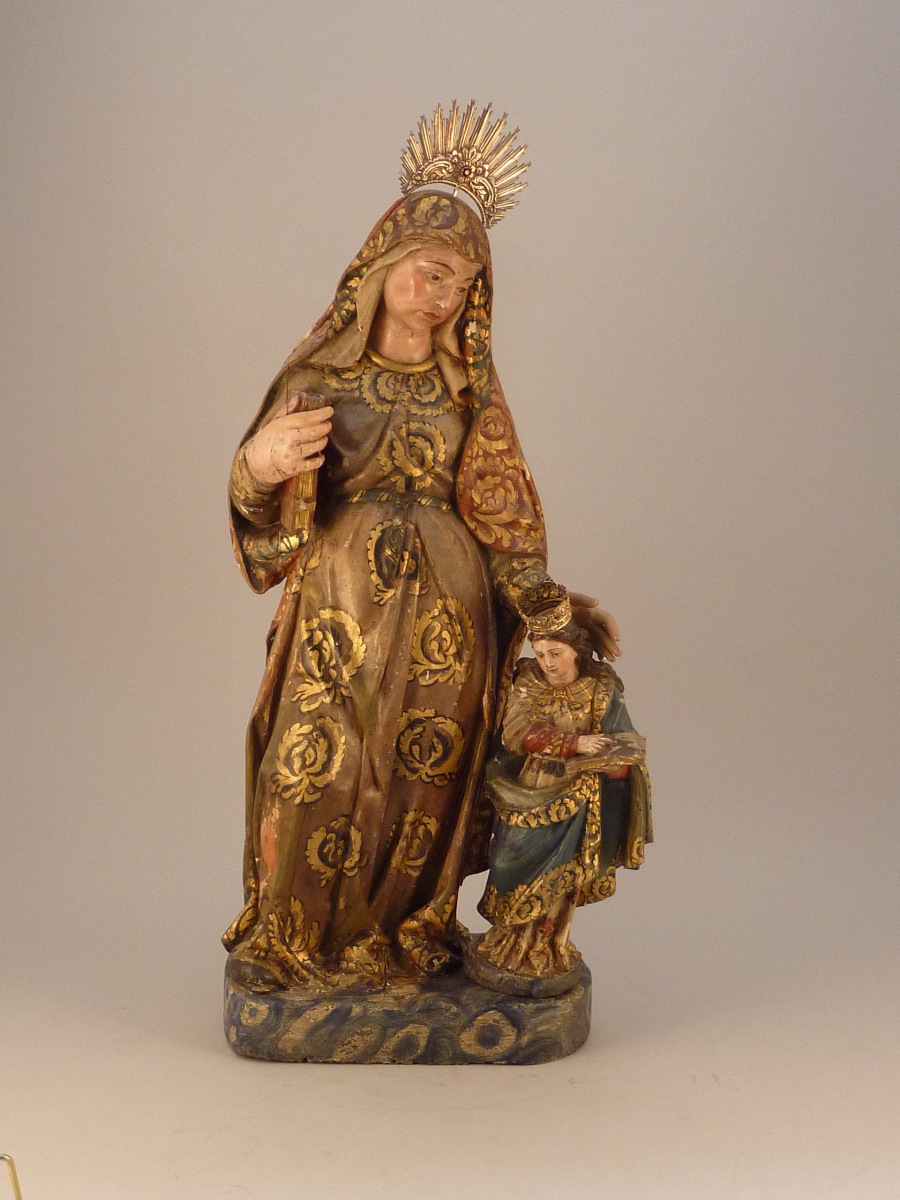 Resplendor de Sainte-Anne en argent repoussé, poinçon pour la ville de Porto au Portugal, 1886-1938. Couronne de la Vierge en vermeil.