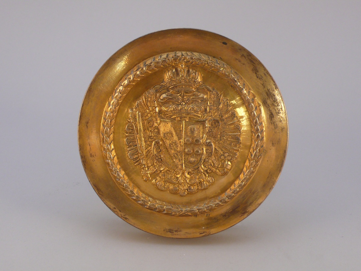 couronné à huit quartiers, entouré du Collier de la Toison d’or. Sur le tout est posé un petit écu aux armes de l’empereur François Ier, Grand Duc de Toscane. Revers lisse avec des restes de cordon de suspension. Accidents et manques à la cire.