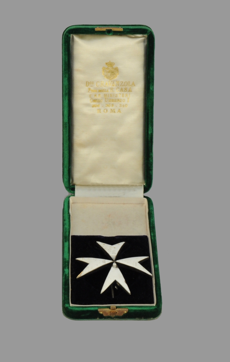 Ordre de Malte, confirmé en 1113, plaque de chevalier profès en vermeil et émail (éclats), poinçon à la tête de sanglier.