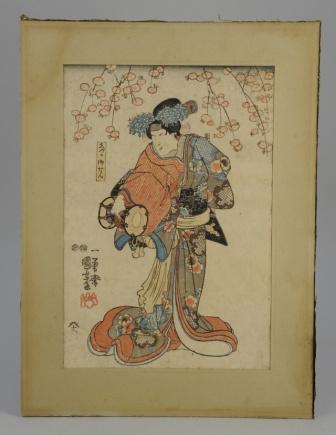 Deux oban tate-e par Toyokuni III et Kuniyoshi, représentant des acteurs debout. (Accidents).