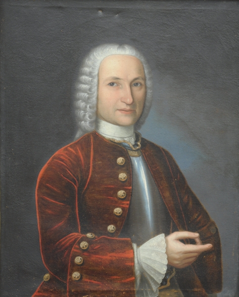 Portrait d'un gentilhomme portant une armure et une veste de velours rouge.