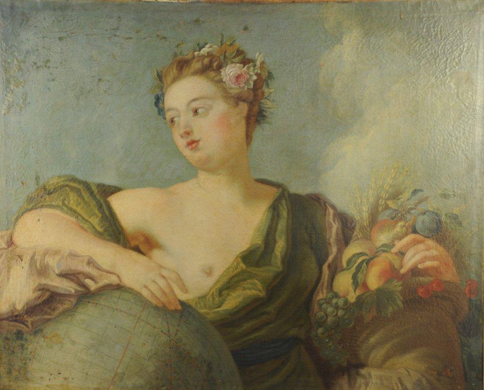 86 x 103 cm. (manques à la peinture, enfoncement)
