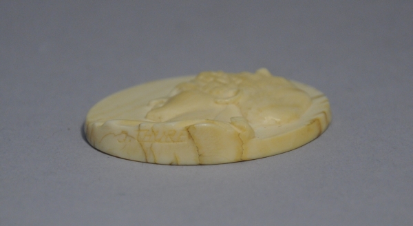 Médaillon en ivoire sculpté en bas relief signé sur la tranche.
