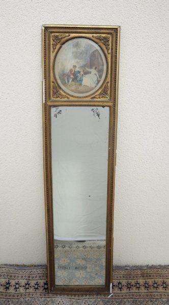 Petit TRUMEAU en bois et plâtre doré, gravure en partie supérieure.