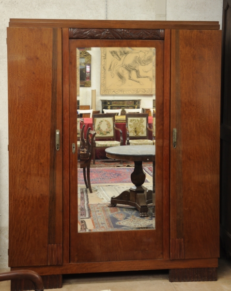ARMOIRE en placage de bois exotique ouvrant par trois portes.