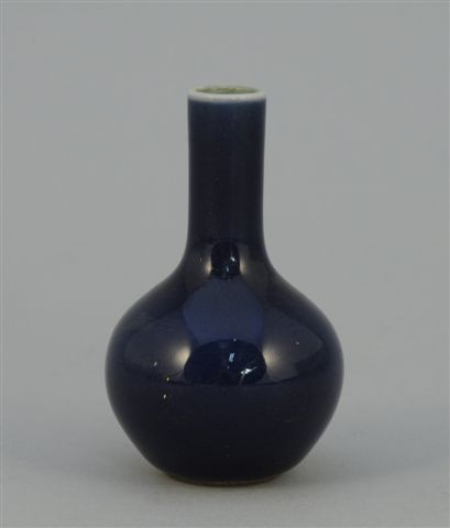 VASE bouteille en porcelaine décorée en bleu sous couverte de branches de cerisiers stylisées. Chine. XXème siècle. Haut. 24 cm. Joint un petit vase en porcelaine.