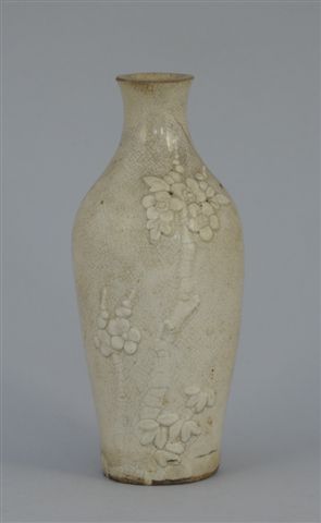 VASE de forme balustre en faïence craquelée à décor en relief de cognassier.