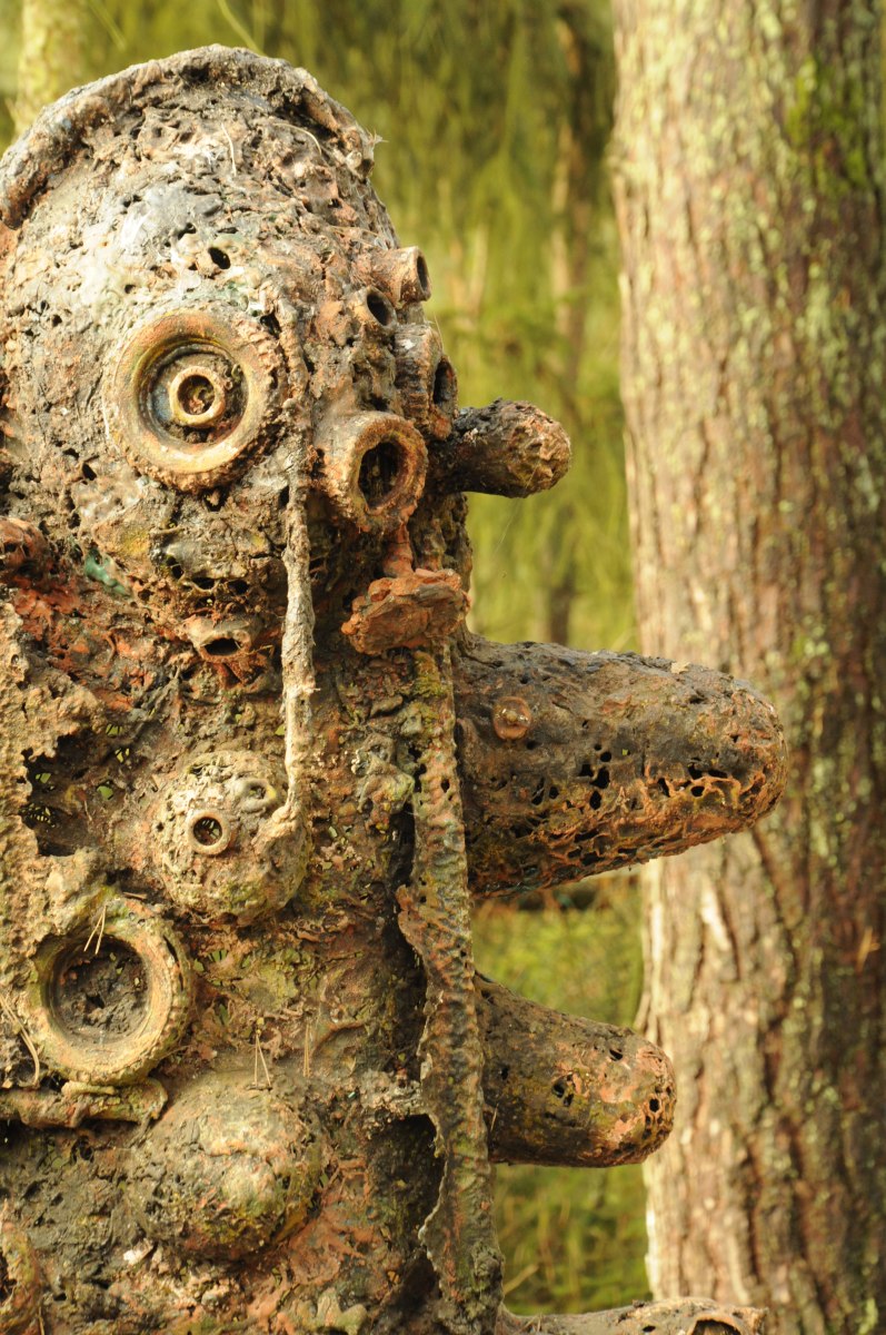 Sculpture en grillage, plastique fondu, fer à béton, incrustations diverses, peinture