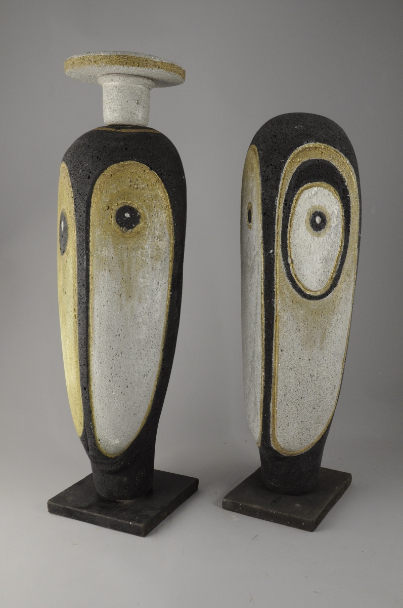 Roger CHOMEAUX, dit CHOMO (1907-1999)Les gardiensDeux sculptures en siporex blanc...